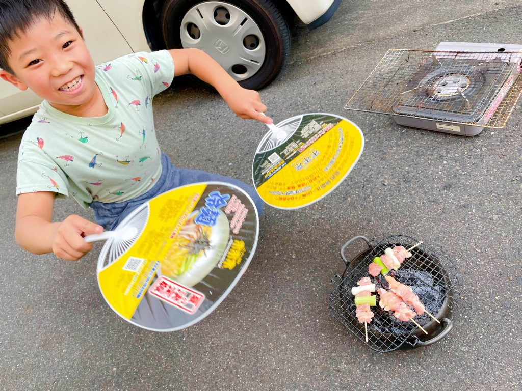 炭火の火おこしを手伝ってくれました( ´∀` )