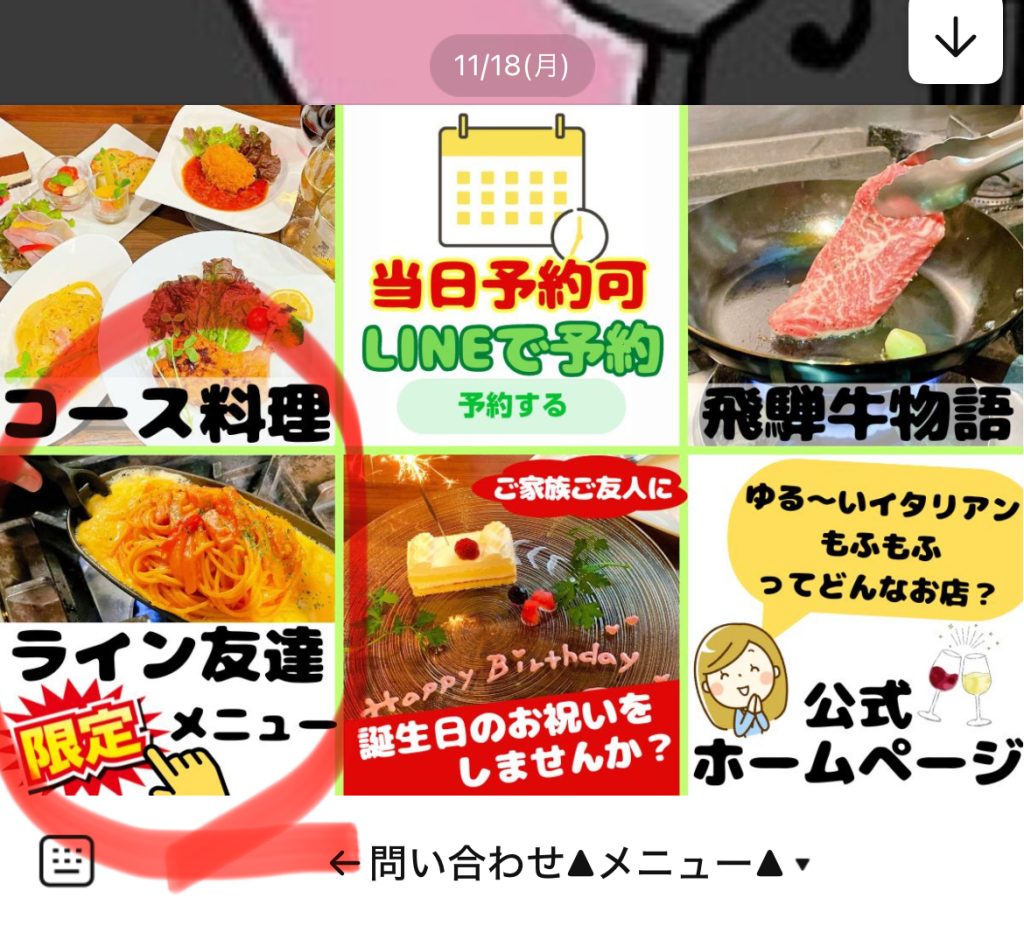 ↓ライン友だち限定メニューを確認して
