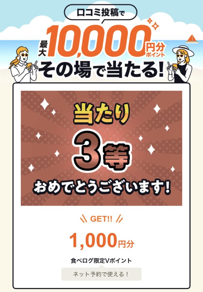 口コミを書くと回せるルーレットで
