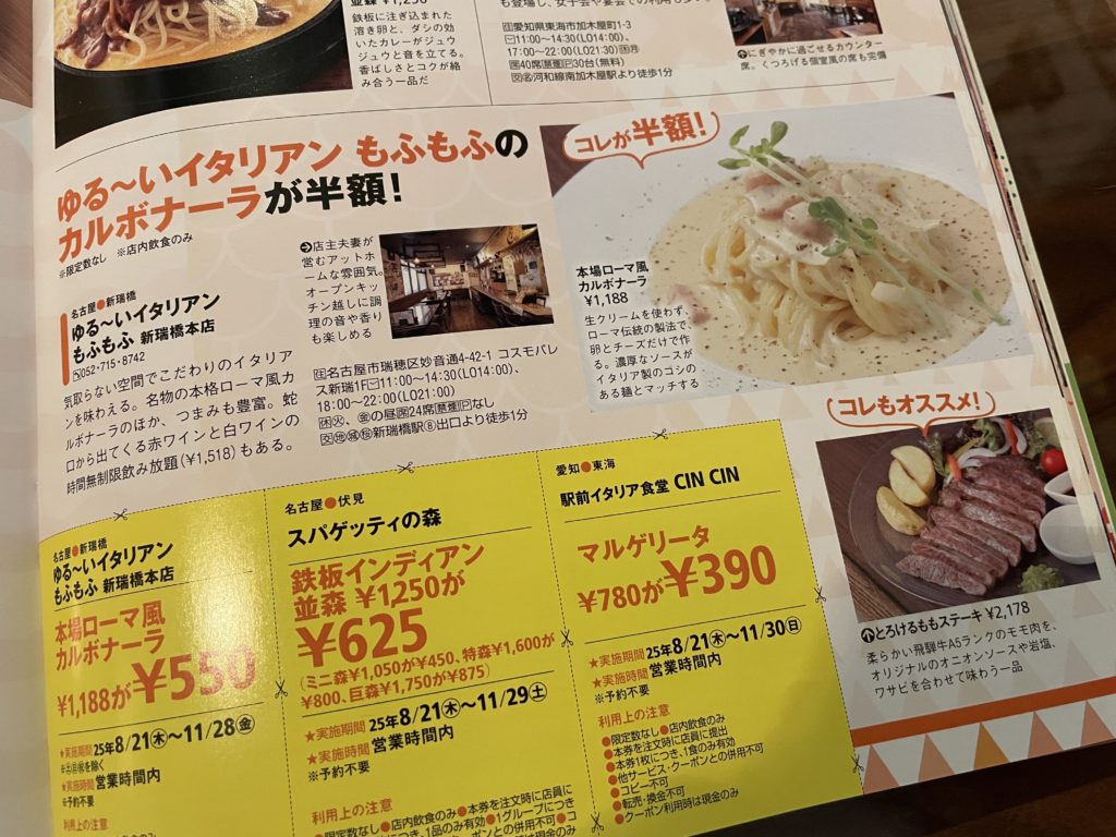 色んなお店のクーポンも付いているので