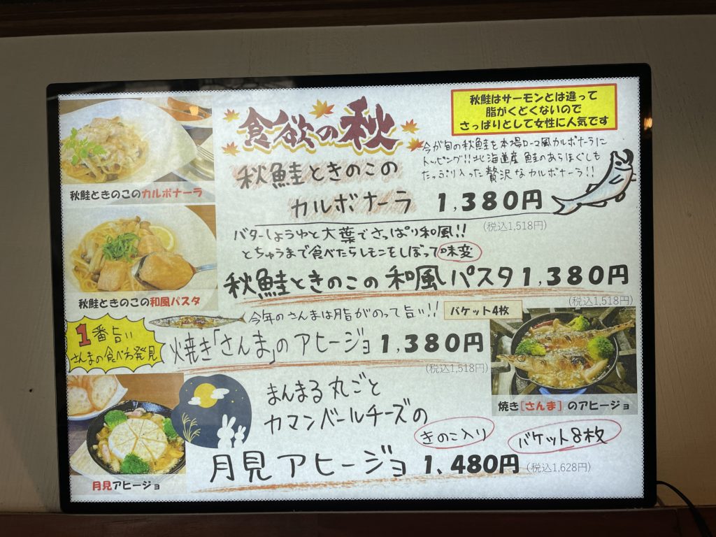 秋のメニューは