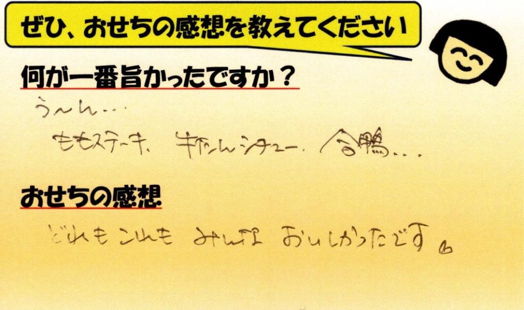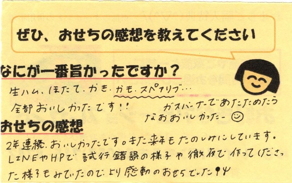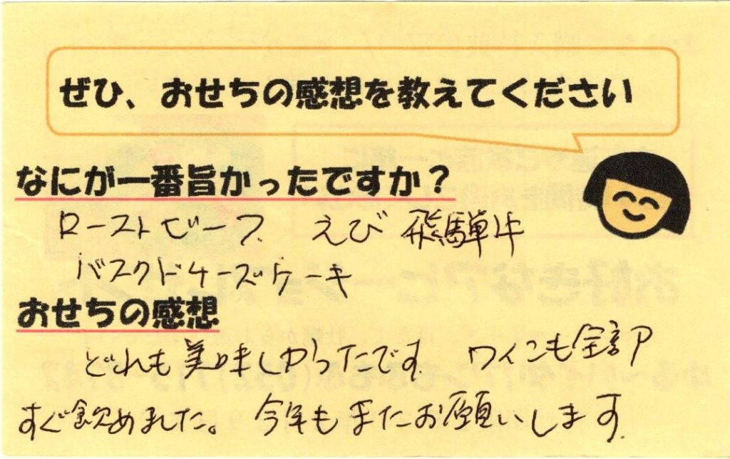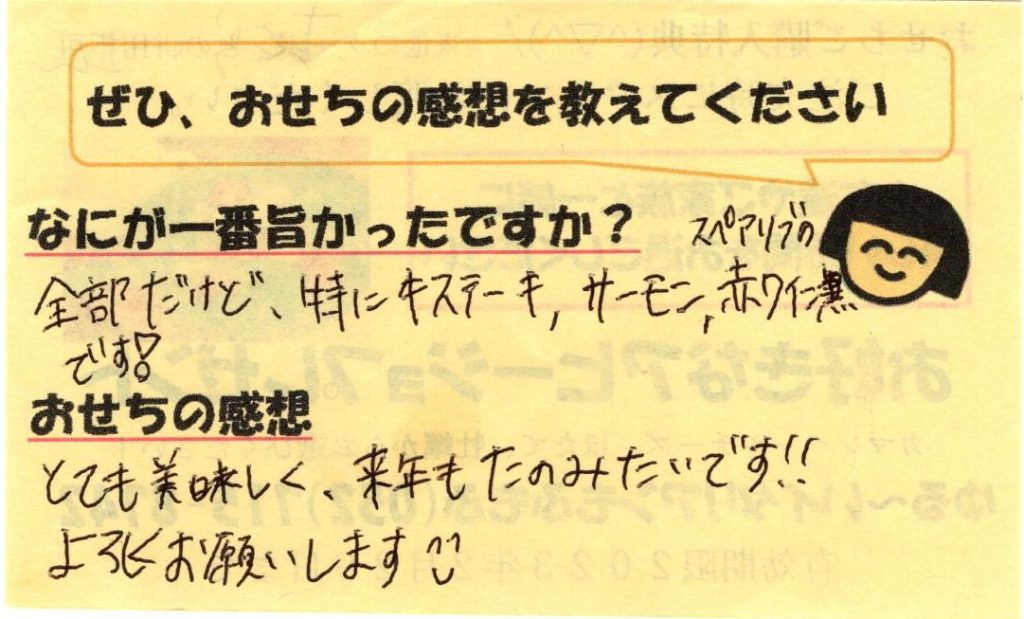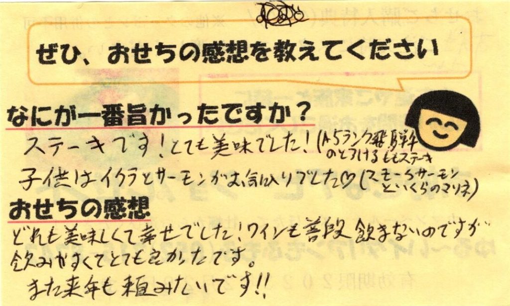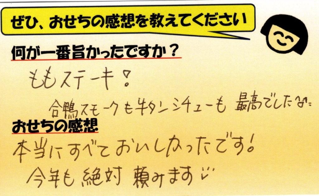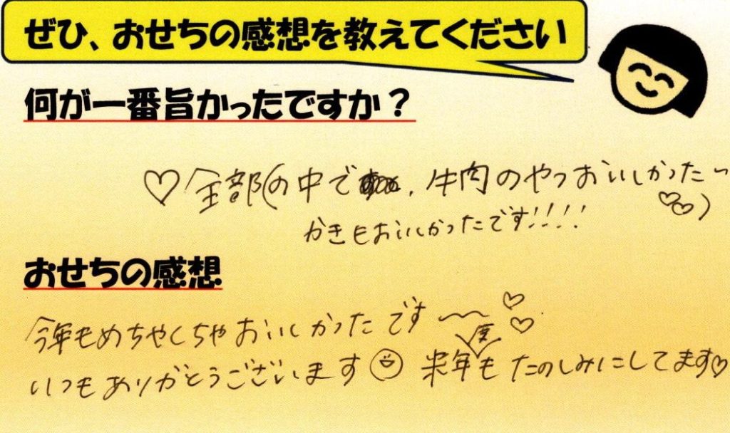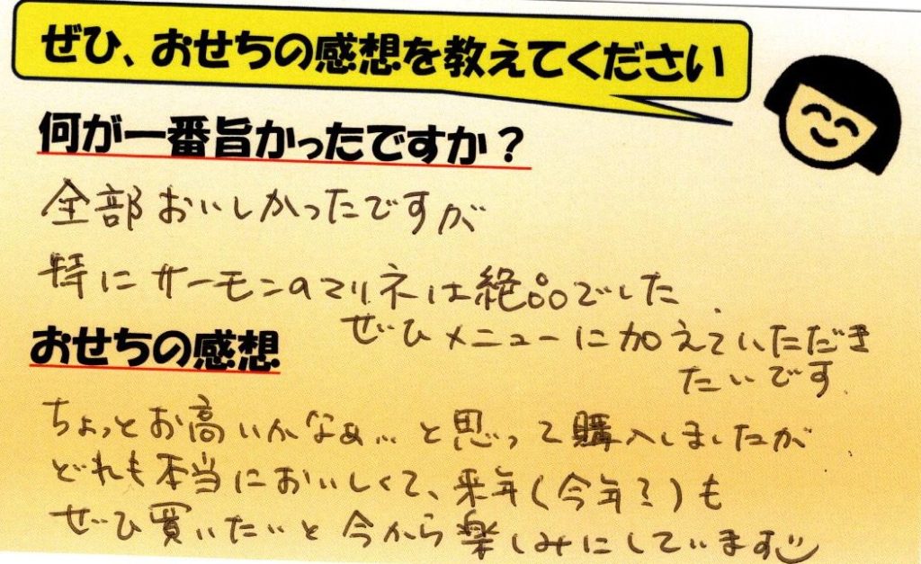 「おせち楽しみにしてるね」