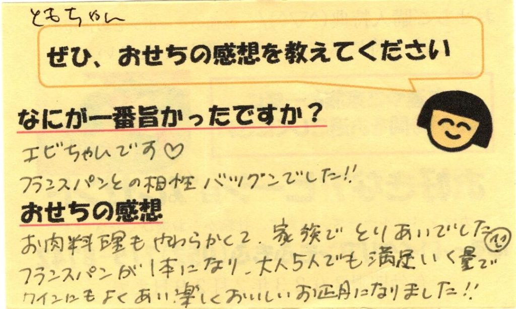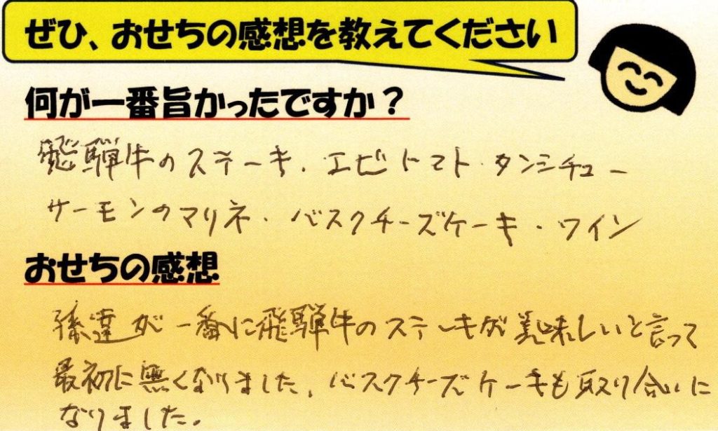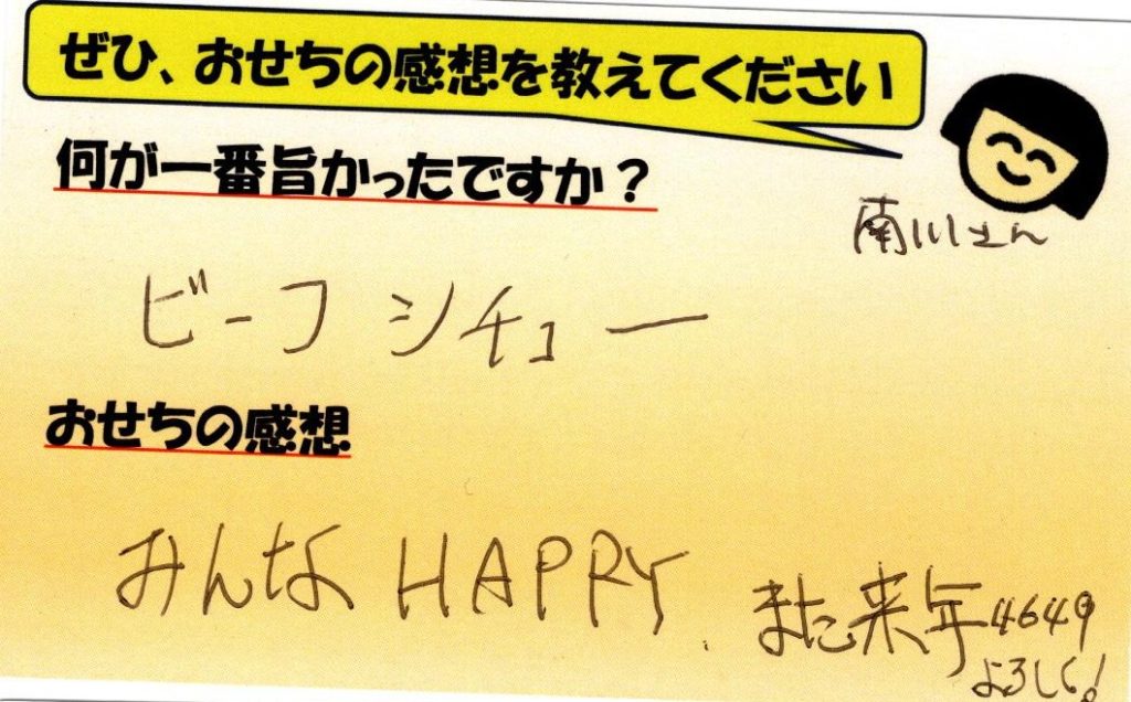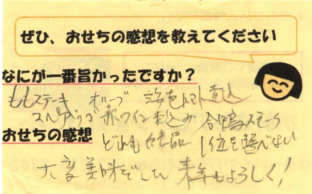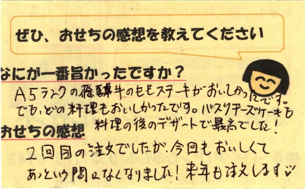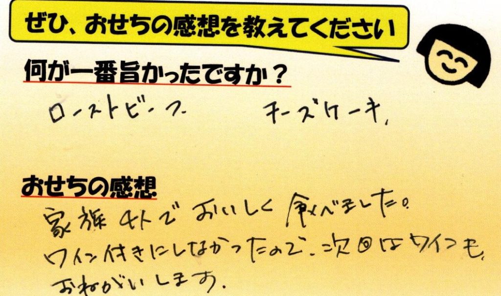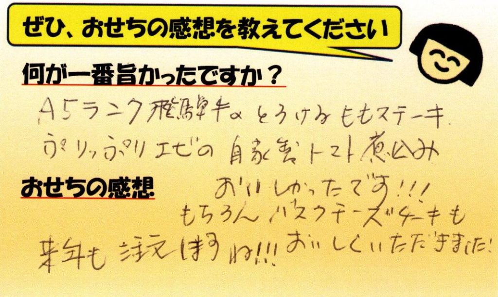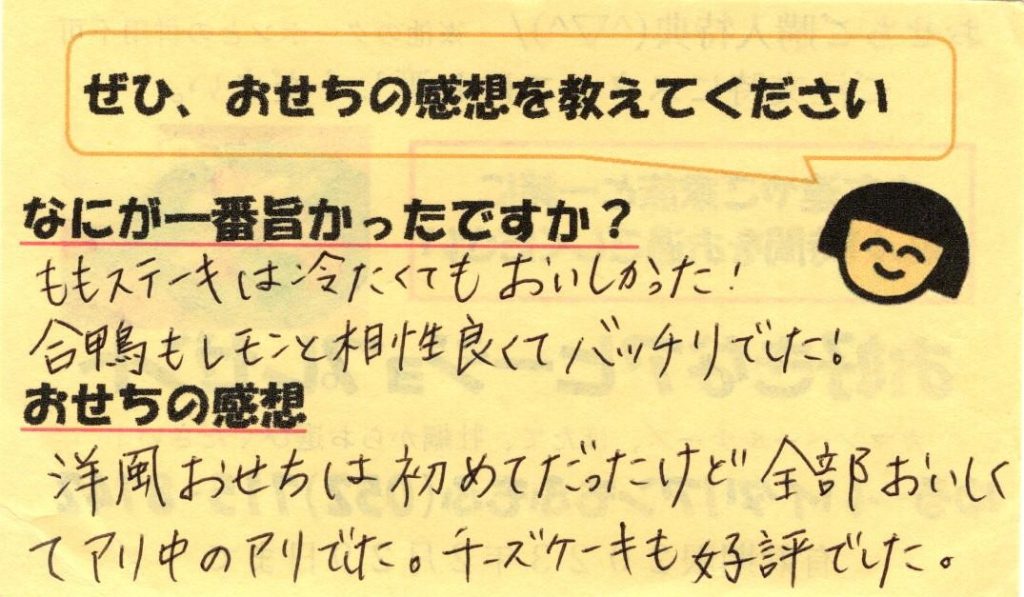 「おせち楽しみにしてるね」