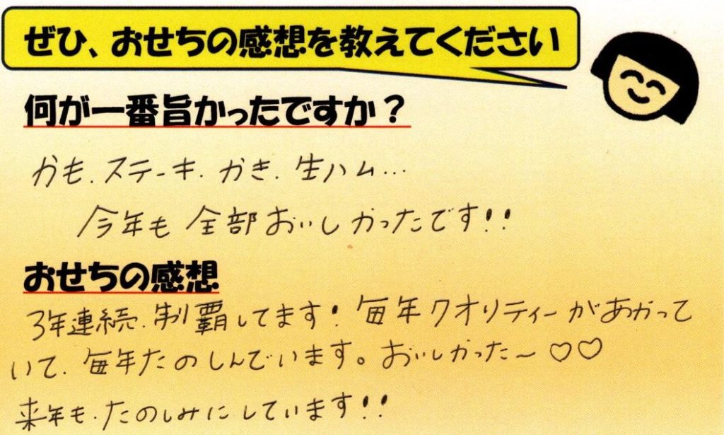 「今年もおせちやるんでしょ」